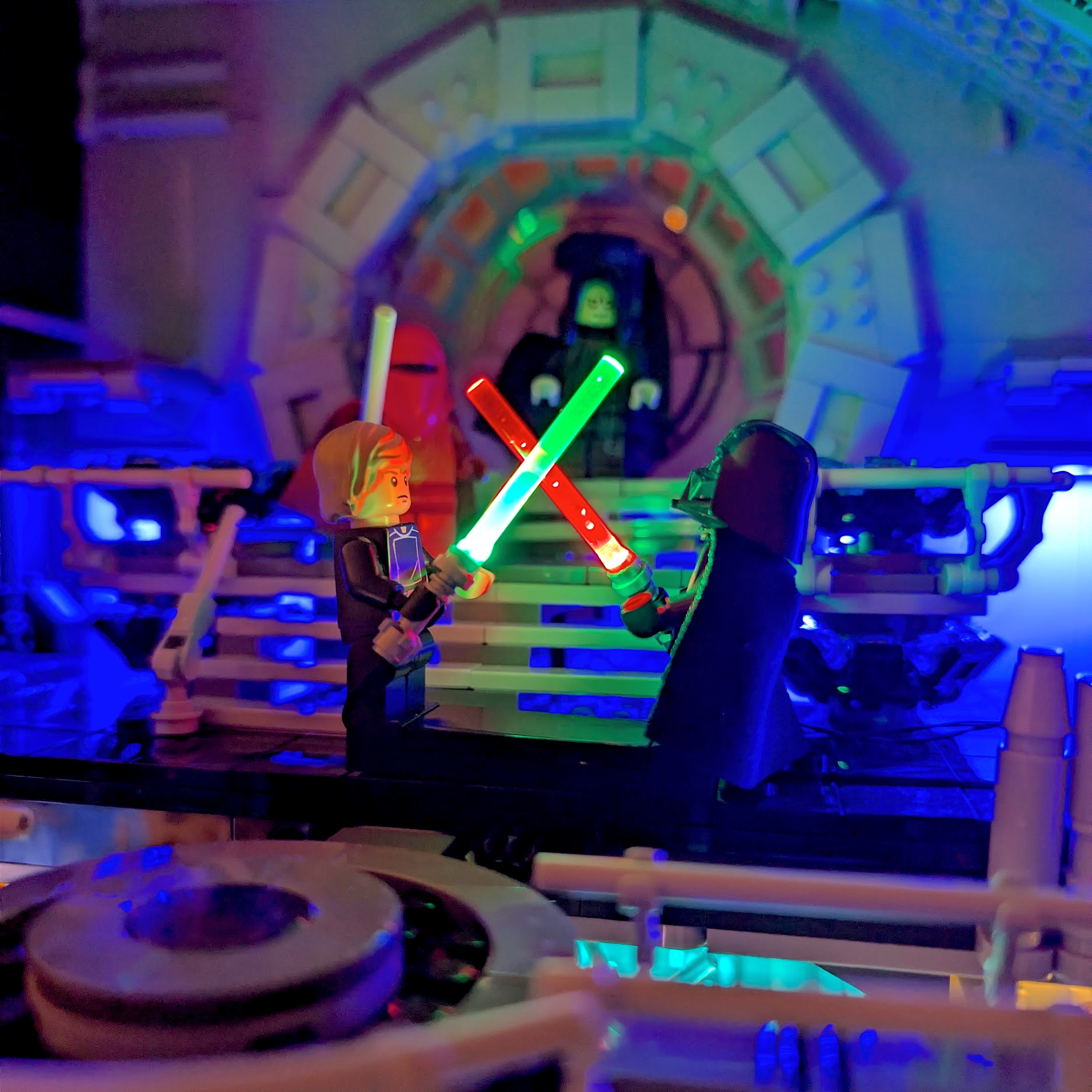 Das Final Duel im Thronsaal des Imperators ist nun mit LED-Hintergrundbeleuchtung und "echten" Lichtschwertern ausgestattet.